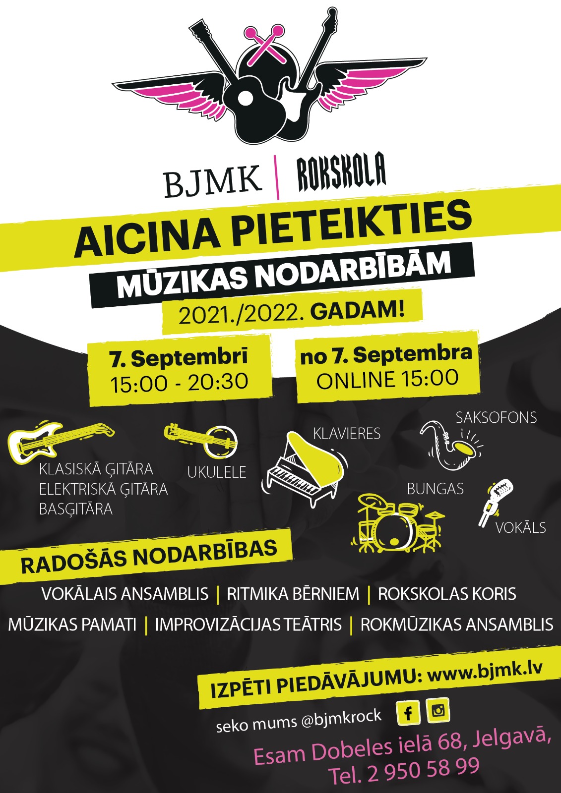 BJMK Rokskola aicina pieteikties mūzikas nodarbībām Izpēti piedāvājumu: http://rokskola.bjmk.lv/macibas