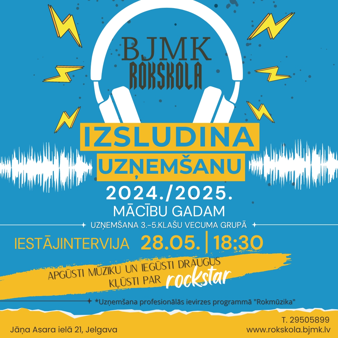 BJMK Rokskola aicina uz iestājinterviju profesionālās ievirzes programmā „Rokmūzika”, 2024./2025. mācību gadam!