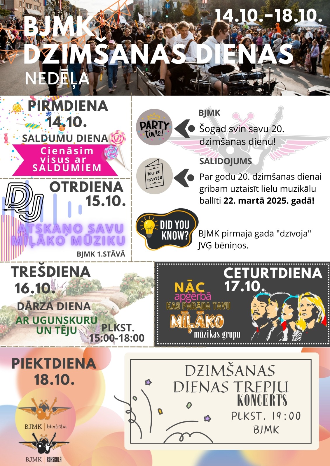 18. oktobrī Bērnu un jauniešu mūzikas klubam, no kā izauga BJMK Rokskola, 20 gadu dzimšanas diena!!