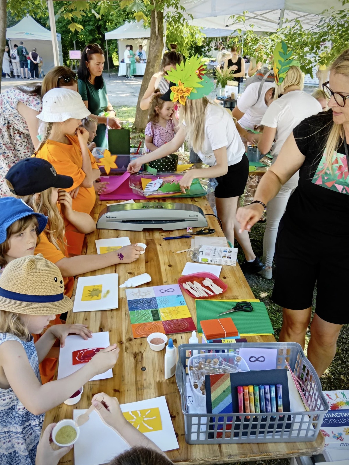 Radošās darbnīcas, kuras nodrošinās dažādas nevalstiskās organizācijas, piedāvās bērniem un vecākiem iesaistīties dažādās aktivitātēs – sākot no mākslas darbnīcas (“Kultūras un mākslas centrs “Nātre””), mūzikas instrumentu veidošanas (BJMK) līdz Francijas izzināšanai (BJMK Eiropas brīvprātīgā no Francijas), orientēšanās spēlei “Iepazīsti Jelgavu” (“Jelgavas Attīstībai”, NVO fonds) un sportiskām aktivitātēm (Galda Tenisa klubs “Jelgava”, Daudzbērnu ģimeņu biedrība “Goda ģimenes”). Savukārt Jelgavas un apkārtnes amatnieki un mājražotāji piedalīsies tirdziņā, piedāvājot vietējo produkciju un praktiskas darbnīcas. Pasākumā darbosies arī āra kafejnīca. Par tirdziņu īpašs paldies “Lauku partnerībai “Lielupe””.